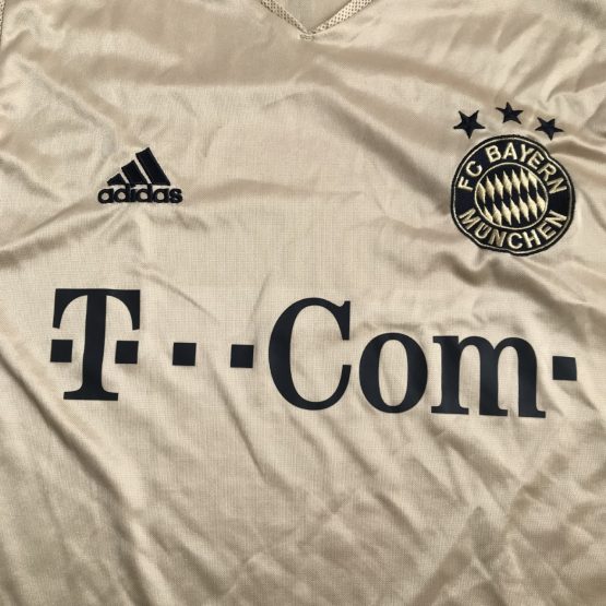 Camiseta visitante usada en la temporada 2004/2005 donde el Bayern ganó el doblete alemán por segunda vez en tres temporadas, lo que aseguró que la primera temporada de Felix Magath como técnico fuera exitosa. Entre los jugadores clave del éxito se encontraban Roy Makaay y el creador de juego Michael Ballack .